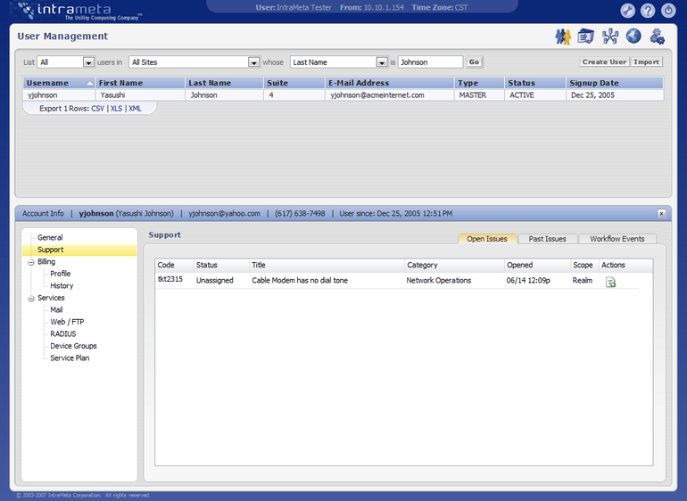 Subscriber Management is the core module within BOSS that allows for the management and manipulation of user accounts. From within the Subscriber Management interface, operators may search for user accounts, produce reports, and organize and manage individual user accounts and their active services.